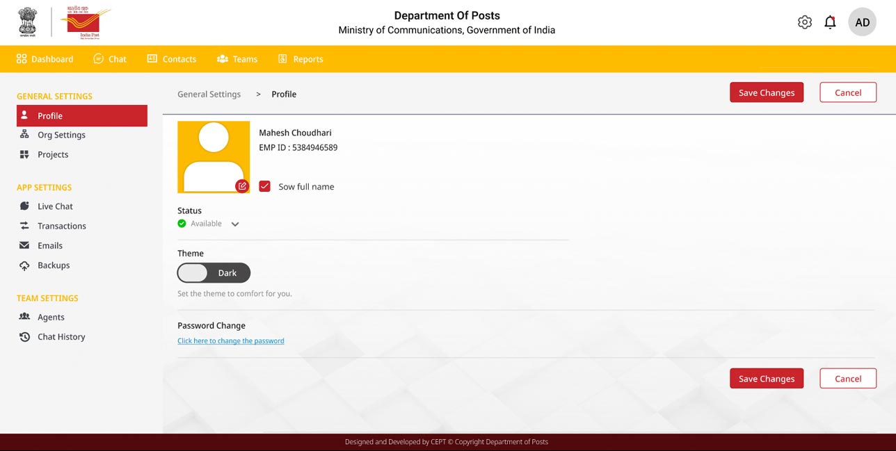 India Post - Live Chat Admin Login