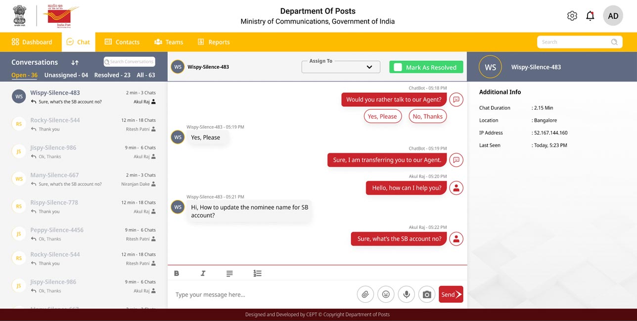 India Post - Live Chat Admin Login
